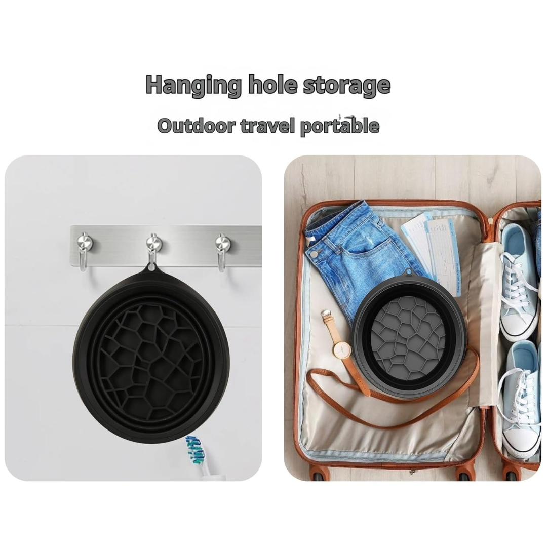 The bowl is made of soft, foldable silicone — just rinse, fold flat, and store it anywhere easily.